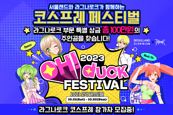 2023 ¿À´ö Æä½ºÆ¼¹úÀº 10¿ù 21Àϰú 22ÀÏ, ¸ÅÀÏ ¿ÀÀü 11½ÃºÎÅÍ ¿ÀÈÄ 9½Ã±îÁö ¼¿ï·£µå ÁÖÃÖ·Î ÁøÇàÇÏ´Â ÄÚ½ºÇÁ·¹ Æä½ºÆ¼¹ú Çà»çÀÌ´Ù. ¾çÀϰ£ »ïõ¸® ´ë±ØÀå, Áö±¸º° ¹«´ë µî ¼¿ï·£µå ³» ¿©·¯ Àå¼Ò¿¡¼ ¶ó±×³ª·ÎÅ© ÄÚ½ºÇÁ·¹ ÆÐ¼Ç¼î¸¦ ºñ·ÔÇÑ ´í½º °æ¿¬, ¹«´ë À̺¥Æ®, ÅäÅ©¼î µî ´Ùä·Î¿î ÇÁ·Î±×·¥ÀÌ ÁøÇàµÉ ¿¹Á¤ÀÌ´Ù. ¶ÇÇÑ ´Ù¾çÇÑ ¶ó±×³ª·ÎÅ© ±ÂÁî »óǰÀ» ¸¸³¯ ¼ö ÀÖ´Â RO¼¥µµ ÇÔ²² ¿î¿µµÈ´Ù.
