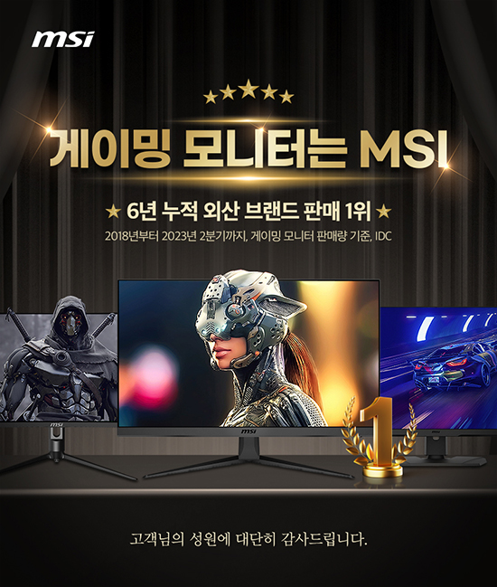¼¼°èÀûÀÎ ½ÃÀå Á¶»ç ±â°ü IDC¿¡ µû¸£¸é, MSI´Â Áö³ 2018³âºÎÅÍ 2023³â 2ºÐ±â±îÁö ±¹³» ¸ð´ÏÅÍ ½ÃÀå¿¡¼ ¿Ü»ê ºê·£µå °ÔÀÌ¹Ö ¸ð´ÏÅÍ ´©Àû ÆÇ¸Å·® 1À§¸¦ ´Þ¼ºÇÑ °ÍÀ¸·Î ÀüÇØÁ³´Ù. ÀÌ´Â 2018³â MSI°¡ ±¹³» °ÔÀÌ¹Ö ¸ð´ÏÅÍ ½ÃÀå¿¡ ÁøÃâÇÑ ÀÌÈÄ ¾à 6³â°£ Áö¼Ó ´©ÀûµÇ¾î ¿Â ±â·ÏÀÌ´Ù.