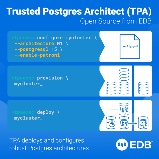 EDB´Â ¿À´Ã, »õ·Î¿î ¿ÀÇ ¼Ò½º ¹èÆ÷ ¹× °ü¸® ÀÚµ¿È µµ±¸ÀÎ TPA (½Å·ÚÇÒ ¼ö ÀÖ´Â Æ÷½ºÆ®±×·¹½º ¾ÆÅ°ÅØÆ®, Trusted Postgres Architect)¸¦ ¸ðµç Æ÷½ºÆ®±×·¹SQL »ç¿ëÀÚ°¡ ÀÌ¿ëÇÒ ¼ö ÀÖµµ·Ï Á¦°øÇÑ´Ù°í ¹ßÇ¥Çß´Ù.