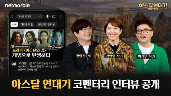 ³Ý¸¶ºíÀº ½ºÆ©µð¿Àµå·¡°ï°úÀÇ ÇÕÀÛ µå¶ó¸¶ <¾Æ¶ó¹®ÀÇ °Ë> ¹æ¿µÀ» ±â³äÇØ °³¹ß ÁßÀÎ ÃÊ´ëÇü MMORPG <¾Æ½º´Þ ¿¬´ë±â: ¾Æ¶ó¹®ÀÇ °Ë(°¡Äª)> ÄÚ¸àÅ͸® ÀÎÅÍºä ¿µ»óÀ» À¯Æ©ºê ä³Î¿¡ °ø°³Çß´Ù°í 11ÀÏ ¹àÇû´Ù. À̹ø ¿µ»ó¿¡´Â MMORPG <¾Æ½º´Þ ¿¬´ë±â: ¾Æ¶ó¹®ÀÇ °Ë> °³¹ß ÃѰýÀ» ¸ÃÀº ³Ý¸¶ºí¿¡ÇÁ¾Ø¾¾ ÀåÇöÁø PD¿Í µå¶ó¸¶ <¾Æ¶ó¹®ÀÇ °Ë>À» ÁýÇÊÇÑ ±è¿µÇö, ¹Ú»ó¿¬ ÀÛ°¡°¡ Ãâ¿¬ÇØ, µå¶ó¸¶ÀÇ °ÔÀÓÈ °úÁ¤À» °ø°³Çß´Ù.