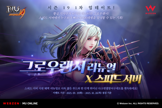 À¥Á¨Àº ¿À´Ã(9¿ù 19ÀÏ) ¡®¹Â ¿Â¶óÀΡ¯ÀÇ ¿©¼º ij¸¯ÅÍ '±×·Î¿ì·£¼'ÀÇ ¾÷µ¥ÀÌÆ®¸¦ Àû¿ëÇϰí, ÇØ´ç ij¸¯Å͸¦ °¡Àå ºü¸£°Ô À°¼ºÇÒ ¼ö ÀÖ´Â ¡®½ºÇÇµå ¼¹ö¡¯¸¦ ¿î¿µÇÑ´Ù.