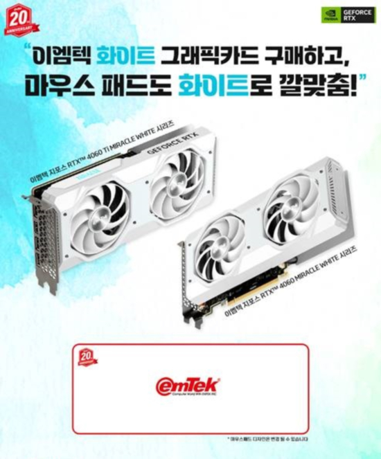 ÀÌ¿¥ÅؾÆÀÌ¿£¾¾´Â 9¿ù 20ÀÏ(¼ö)ºÎÅÍ 10¿ù 19ÀÏ(¸ñ)±îÁö ÀÌ¿¥ÅؾÆÀÌ¿£¾¾ ⸳ 20ÁÖ³âÀ» ¸ÂÀÌÇØ ÇÑÁ¤¼ö·® 1,000°³ ¼ÒÁø ½Ã ±îÁö ÀÌ¿¥ÅØ ÁöÆ÷½º RTX 4060 WHITE ½Ã¸®Áî ±×·¡ÇÈÄ«µå ¶Ç´Â ±×·¡ÇÈÄ«µå°¡ ÀåÂøµÈ µ¥½ºÅ©Åé ±¸¸Å ½Ã, ¢ßÀÌ¿¥ÅؾÆÀÌ¿£¾¾ ⸳ 20ÁÖ³âÀ» ±â³äÇØ Ưº° Á¦ÀÛµÈ ÈÀÌÆ® ¸¶¿ì½º ÀåÆÐµå¸¦ ÁõÁ¤ÇÏ´Â À̺¥Æ®¸¦ ÁøÇàÇÑ´Ù ¹àÇû´Ù.
