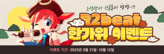 ¹ë·ÎÇÁ¿¡¼ ¼ºñ½º ÁßÀÎ ¿Â¶óÀÎ °ÔÀÓ ¡®R2BEAT(¾ËÅõºñÆ®)¡¯´Â 9¿ù 21ÀÏ(¸ñ)ºÎÅÍ ¾÷µ¥ÀÌÆ®¸¦ ½ÃÀÛÀ¸·Î ¡®ÇѰ¡À§ À̺¥Æ®¡¯¸¦ ÁøÇàÇÑ´Ù.
