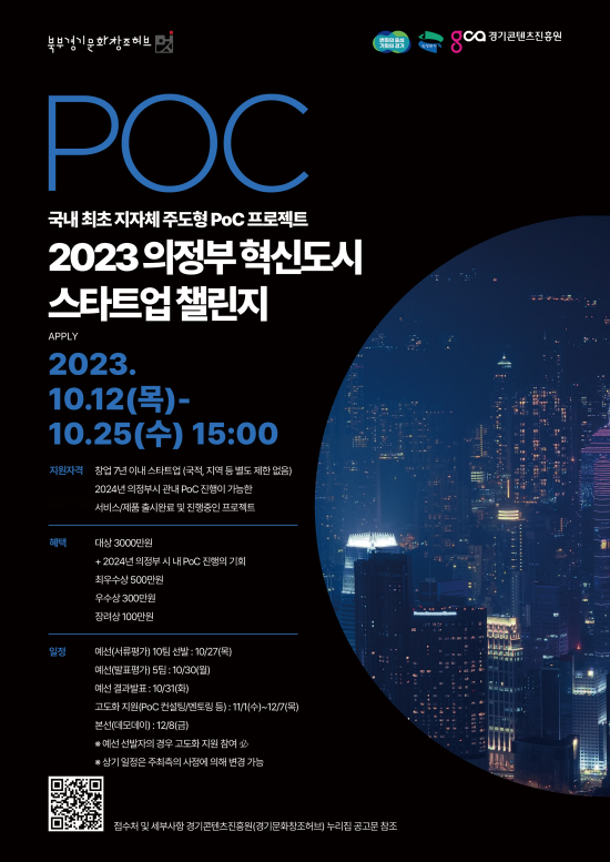 °æ±âÄÜÅÙÃ÷ÁøÈï¿ø(ÀÌÇÏ °æÄÜÁø)Àº ÀÇÁ¤ºÎ½Ã¿Í ÇÔ²² ÀÇÁ¤ºÎ½Ã ¹Ì·¡»ê¾÷ À°¼º Á¤Ã¥ÀÇ ÀÏȯÀ¸·Î ÀÇÁ¤ºÎ½Ã °ü³» PoC(Proof of Concept, ±â¼ú½ÇÁõ) Áö¿øÀ» Èñ¸ÁÇÏ´Â ¿ì¼ö ½ºÅ¸Æ®¾÷ ¹ß±¼À» À§ÇØ ¡®2023 ÀÇÁ¤ºÎ Çõ½Åµµ½Ã 縰Áö ¿Àµð¼Ç(ÀÌÇÏ ¿Àµð¼Ç)¡¯À» °³ÃÖÇÑ´Ù°í 12ÀÏ ¹àÇû´Ù.