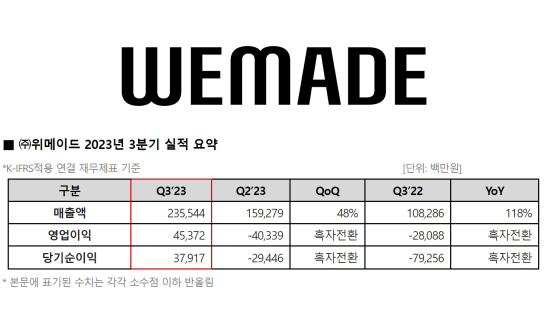 [À§¸ÞÀ̵åÇ÷¹ÀÌ] 2023³â 3ºÐ±â ¿¬°á ±âÁØ ¸ÅÃâ 299¾ï ¿ø, ´ç±â¼ø..  (0)  2023-11-07