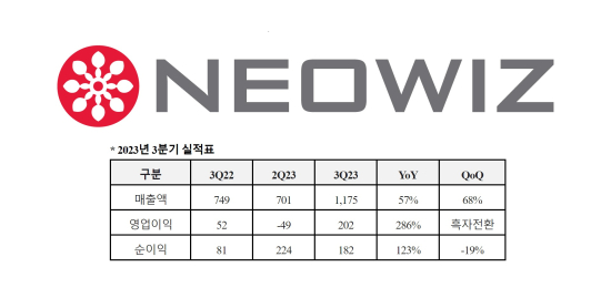 [³×¿ÀÀ§Áî] 2023³â 3ºÐ±â ¸ÅÃâ 1,175¾ï ¿ø, ¿µ¾÷ÀÌÀÍ 202¾ï ¿ø |