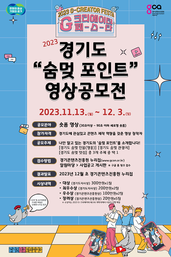 °æ±âµµ¿Í °æ±âÄÜÅÙÃ÷ÁøÈï¿ø(°æÄÜÁø)ÀÌ ¿Ã ¿¬¸» °³ÃÖ ¿¹Á¤ÀÎ Å©¸®¿¡ÀÌÅÍÀÇ ÃàÁ¦ÀÎ ¡®2023 G-Å©¸®¿¡ÀÌÅÍ Æä½ºÅ¸¡¯ Çà»ç¿¡ ¾Õ¼ ¡®°æ±âµµ ¼û¸Ü Æ÷ÀÎÆ® ¿µ»ó °ø¸ðÀü¡¯À» °³ÃÖÇÑ´Ù.