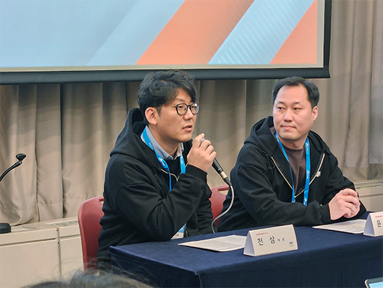 Q. ½ºÅ³ ¸ð¼Ç°ú ¾Ö´Ï¸ÞÀ̼ÇÀÌ µü ¸Â´Âµ¥, ¾î¶»°Ô °³¹ßÇß´ÂÁö? A. À±ÅÂÈ£: ÀÛ¾÷ÀÚ ÇÇ¿Í ´«¹°À̶ó°í ¸»¾¸µå¸± ¼ö ÀÖ´Ù. Á¤È®ÇÑ Å¸À̹ÖÀ» ¸ÂÃç¾ß Çϱ⠶§¹®ÀÌ´Ù. . Q. ȸ»ç ¼³¸³ºÎÅÍ ÁغñÇÑ ÇÁ·ÎÁ§Æ®ÀÎÁö? A. õ»ï: óÀ½ ȸ»ç¸¦ ¸¸µé ¶§ºÎÅÍ À¥Á¨¿¡ ÇÊ¿äÇÑ °Ô ¹«¾ùÀÎÁö ¸¹ÀÌ »ý°¢Çß´Ù. À¥Á¨Àº MMORPG, ¡®¹Â¡¯¶ó´Â µÎ °¡Áö Ű¿öµå·Î ÀνĵŠÀÖ°í À¯ÀúºÐµéµµ ÀÌ·¸°Ô ±â¾ïÇϽñ⠶§¹®ÀÌ´Ù.