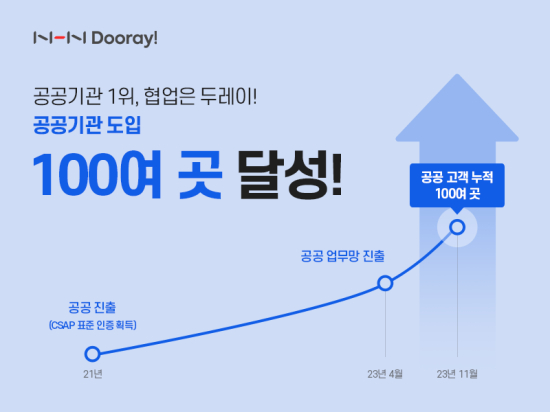 ¿£¿¡ÀÌÄ¡¿£ µÎ·¹ÀÌ(NHN Dooray!, ÀÌÇÏ NHNµÎ·¹ÀÌ)´Â ¿ÃÀοø Çù¾÷µµ±¸ Dooray!(µÎ·¹ÀÌ)¸¦ °ø°ø±â°ü 100¿© °÷ µµÀÔÀ» ´Þ¼ºÇß´Ù°í 23ÀÏ ¹àÇû´Ù. °ø°øºÐ¾ß Á¡À¯À² 1À§ ÀÚ¸®¸¦ ±»Èù µÎ·¹ÀÌ´Â Çù¾÷¹®È È®»êÀÇ ÀüÃʱâÁö¸¦ ¼öÇàÇϰí, °í°´»ç È®º¸¿¡ ´õ¿í ¹ÚÂ÷¸¦ °¡ÇÒ ¿¹Á¤ÀÌ´Ù.