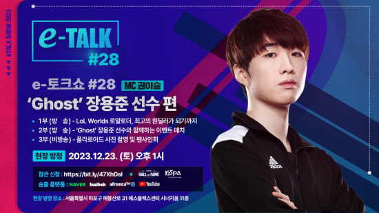 ¿À´Â 23ÀÏ(Åä) ¿ÀÈÄ 1½Ã¿¡ ¿¸®´Â 28ȸ ¡®e-ÅäÅ©¼î¡¯¿¡´Â ¸®±× ¿Àºê ·¹Àüµå ¡®°í½ºÆ®¡¯ Àå¿ëÁØ ¼±¼ö°¡ ¿¬»ç·Î Âü¿©ÇÑ´Ù. ¡®°í½ºÆ®¡¯ Àå¿ëÁØ ¼±¼ö´Â 2015³â CJ ¿£Åõ½º¿¡¼ µ¥ºßÇß°í, ÀÌÈÄ bbq ¿Ã¸®¹ö½º, »÷µå¹Ú½º °ÔÀ̹Ö, ´ã¿ø ±â¾Æ, ³ó½É ·¹µåÆ÷½º µîÀÇ ÆÀÀ» °ÅÄ¡´Â µ¿¾È ¸®±× ¿Àºê ·¹Àüµå(ÀÌÇÏ LoL) ¿ùµå èÇǾð½Ê ¿ì½Â 1ȸ, LoL èÇǾð½Ê ÄÚ¸®¾Æ(LCK) ¿ì½Â 3ȸ µî ÃÖ°íÀÇ È°¾àÀ» º¸¿©Áá´Ù. ¶ÇÇÑ Àå¿ëÁØ ¼±¼ö´Â 2020³â À̽ºÆ÷Ã÷ ¸í¿¹ÀÇ Àü´ç Çå¾×½Ä¿¡¼ È÷¾î·ÎÁî ºÎ¹®¿¡ À̸§À» ¿Ã·È´Ù.