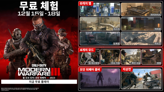 ÄÝ ¿Àºê µàƼ: ¸ð´ø ¿öÆä¾î III 2023(Call of Duty¢ç: Modern Warfare¢ç III, ÀÌÇÏ ¸ð´ø ¿öÆä¾î III 2023)ÀÇ Ã¹ ¹øÂ° ½ÃÁðÀ» ¸ÂÀÌÇØ, »õ·Î¿î ÄÜÅÙÃ÷ ¹× ÀüÀåÀ¸·Î ä¿öÁ® ´õ Â¥¸´ÇØÁø ¸ð´ø ¿öÆä¾î ƯÀ¯ÀÇ ÀüÅõ °æÇèÀ» ´©±¸³ª ¹«·á·Î Áñ°Üº¼ ¼ö ÀÖ´Â ±âȸ°¡ À̹ø ÁÖ¸»¿¡ °ÉÃÄ ÆîÃÄÁø´Ù.