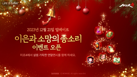 À§¸ÞÀ̵å´Â ´ëÀÛ MMORPG <¹Ì¸£4>°¡ dz¼ºÇÑ ¾ÆÀÌÅÛÀ» ¼±¹°ÇÏ´Â ¿¬¸»¿¬½Ã À̺¥Æ® ¡®ÀÌÀº°ú ¼Ò¸ÁÀÇ Á¾¼Ò¸®¡¯¸¦ ¿À´Ã(21ÀÏ) ½ÃÀÛÇß´Ù.
