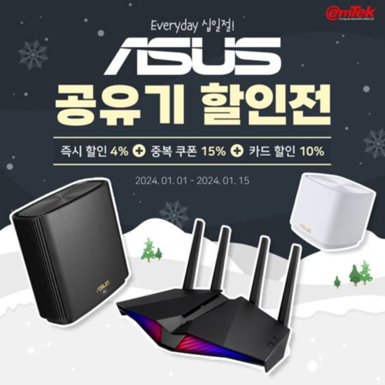 Áï½Ã ÇÒÀÎ 4% + Áߺ¹ ÄíÆù 15% + Ä«µåÇÒÀÎ 10% ÃÖ´ë Àû¿ë ½Ã, Çà»ç Á¦Ç°ÀÎ ASUS RT-AC750LÀÇ ÃÖ´ë ÇýÅð¡ 19,900¿ø, RT-AX82U°¡ 184,340¿ø, RT-AX86U°¡ 270,270¿ø, RT-AX88U°¡ 278,350¿ø, ZenWiFi AX Mini XD4 ÈÀÌÆ® (1pack)°¡ 95,480¿ø, ZenWiFi XT8 ºí·¢ (2Pack)À» 463,410¿øÀÇ °¡°Ý¿¡ ±¸¸ÅÇÒ ¼ö ÀÖ´Ù.