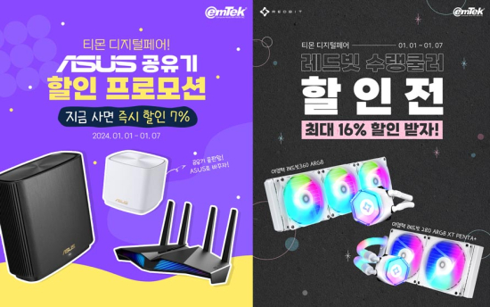 ÀÌ¿¥ÅؾÆÀÌ¿£¾¾´Â 2024³â 1¿ù 1ÀϺÎÅÍ 1¿ù 7ÀϱîÁö ASUS °øÀ¯±â 7Á¾À» Áï½Ã ÇÒÀÎ 7%¿Í ·¹µåºø ¼ö³ÃÄð·¯ 4Á¾À» ÃÖ´ë 16% ÇÒÀÎ(Áï½Ã ÇÒÀÎ 8% + Ä«µå ÇÒÀÎ ÃÖ´ë 8%)À» Ƽ¸ó¿¡¼ ÇÒÀÎ ÇÁ·Î¸ð¼ÇÀ» ÁøÇàÇÑ´Ù ¹àÇû´Ù,