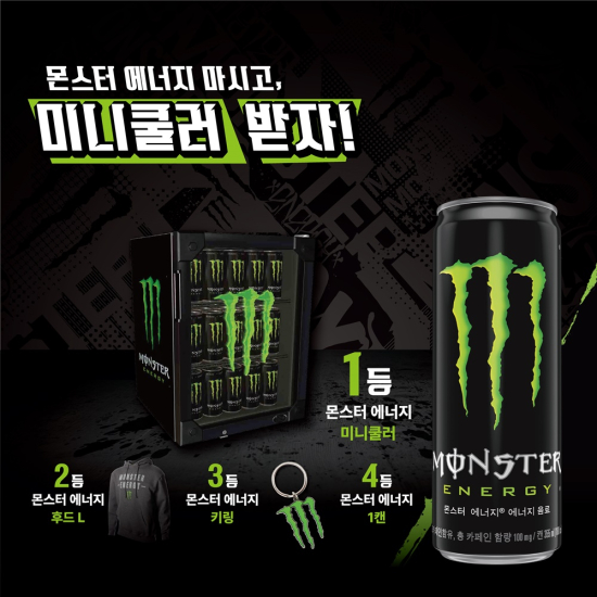 ¸ó½ºÅÍ ¿¡³ÊÁö(Monster Energy)°¡ 1ÀϺÎÅÍ 1¿ù ÇÑ ´Þ µ¿¾È Àü±¹ ÆíÀÇÁ¡ 4°³ ä³Î¿¡¼ ½Å³â ¸ÂÀÌ ¡®¸ó½ºÅÍ ¿¡³ÊÁö ¸¶½Ã°í ¹Ì´ÏÄð·¯ ¹ÞÀÚ¡¯ ÇÁ·Î¸ð¼ÇÀ» ½Ç½ÃÇÑ´Ù.