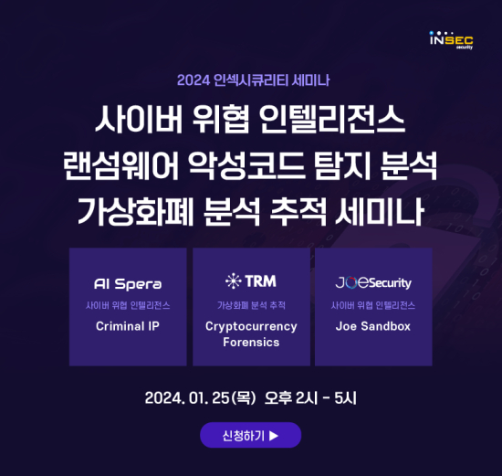 '»çÀ̹ö À§Çù ÀÎÅÚ¸®Àü½º ±â¹Ý ·£¼¶¿þ¾î ¹× ¾ÏÈ£ÈÆó ºÐ¼® ÃßÀû ¼¼¹Ì³ª¡¯´Â ¿À´Â 1¿ù 25ÀÏ(¸ñ)¿¡ ¿ÀÈÄ 2½ÃºÎÅÍ 5½Ã±îÁö ±Ýõ±¸ µ¶»êµ¿ Àμ½½ÃÅ¥¸®Æ¼ º»»ç ±³À°¼¾ÅÍ¿¡¼ ÁøÇàµÈ´Ù. ¼¼¹Ì³ª Âü°¡ÀÚµéÀº »çÀ̹ö À§Çù ÀÎÅÚ¸®Àü½º (CTI) Àü¹®±â¾÷ÀÎ ¡®¿¡À̾ÆÀ̽ºÆä¶ó(AI Spera)¡¯ÀÇ »çÀ̹ö À§Çù ÀÎÅÚ¸®Àü½º °Ë»ö¿£Áø Ç÷§ÆûÀÎ ¡®Criminal IP (Å©¸®¹Ì³Î ¾ÆÀÌÇÇ)¡¯¸¦ ±â¹ÝÀ¸·Î, ±Û·Î¹ú ¾Ç¼ºÄÚµå ¸Ö¿þ¾î ºÐ¼® ¼Ö·ç¼Ç ±â¾÷ÀÎ ¡®Á¶½ÃÅ¥¸®Æ¼(Joe Security)¡¯ÀÇ ¾Ç¼ºÄÚµå Á¤¹ÐºÐ¼® ¼Ö·ç¼ÇÀÎ ¡®Á¶»÷µå¹Ú½º(Joe Sandbox)¡¯¿Í ±Û·Î¹ú °¡»óÀÚ»ê ºÐ¼® ±â¾÷ÀÎ TRM LabsÀÇ TRM Forensicsºí·ÏüÀÎ ¹× ¾ÏÈ£ÈÆó ºÐ¼® ¼Ö·ç¼ÇÀ» Ȱ¿ëÇÏ¿© ¾Ç¼ºÄÚµå ·£¼¶¿þ¾î ŽÁö ¹æ¹ýÀ» ½Ã¿¬Çغ¸°í ¾ÏÈ£ÈÆó¸¦ ºÐ¼®Çغ¼ ¼ö ÀÖ´Ù.