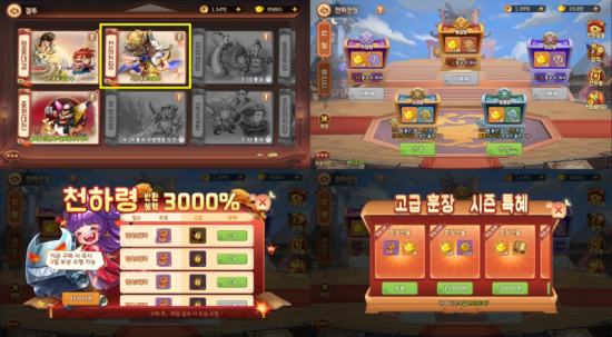 À̹ø ¾÷µ¥ÀÌÆ®´Â Å©°Ô 3°¡Áö·Î ¸ÕÀú 'õÇÏÀüÀå'Àº 7ÀÏ ÁÖ±â·Î 1°³ ½ÃÁðÀÌ ÁøÇàµÇ´Â ÆÀ´ë°á ¸ðµå·Î ´ë°á¿¡¼ ½Â¸® ½Ã ȹµæÇÑ Á¡¼ö¿Í ·©Å·¿¡ µû¶ó º¸»óÀ» ȹµæÇϰí ÈÖÀå µî±Þ¿¡ µû¶ó õÇÏ»óÁ¡¿¡¼ ´Ù¾çÇÑ ¾ÆÀÌÅÛÀ¸·Î ±³È¯ÇÒ ¼ö ÀÖ´Ù.