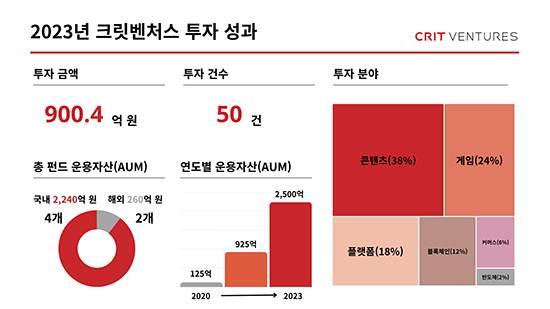 ¼³¸³ 4³âÂ÷¸¦ ¸ÂÀº Å©¸´º¥Ã³½º´Â º¥Ã³ÅõÀÚ È¤Çѱ⠼ӿ¡¼µµ 2023³â ÃÑ 900¾ï 4000¸¸¿øÀÇ ÅõÀÚ¸¦ ÁýÇàÇß´Ù°í ¹àÇû´Ù. Å©¸´º¥Ã³½º´Â ¿µ»ó, À½¾Ç, °ÔÀÓ µî K-ÄÜÅÙÃ÷ ºÐ¾ß¿Í ºí·ÏüÀÎ ±â¹Ý »ç¾÷¸ðµ¨ Çõ½ÅºÐ¾ß¿¡ Àû±ØÀûÀ¸·Î ÅõÀÚÇßÀ¸¸ç ÀÌ´Â Áö³ 2³â°£ ´©Àû ÅõÀÚ ±Ý¾×ÀÎ ¾à 700¾ï¿øÀ» Å©°Ô »óȸÇÏ´Â ±Ý¾×ÀÌ´Ù.