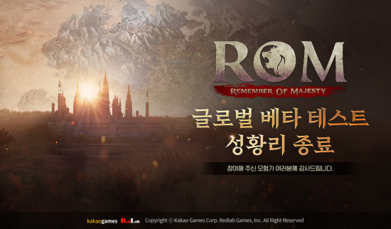 ·¹µå·¦°ÔÀÓÁî´Â Àڻ簡 °³¹ßÇϰí īī¿À°ÔÀÓÁî(´ëÇ¥ Á¶°èÇö)¿Í ÇÔ²² ¼ºñ½º ¿¹Á¤ÀÎ ½ÅÀÛ ÇϵåÄÚ¾î MMORPG ¡®·Ò(ROM: Remember Of Majesty)(ÀÌÇÏ ·Ò)¡¯ÀÇ ±Û·Î¹ú º£Å¸ Å×½ºÆ®¸¦ ¼ºÈ²¸®¿¡ Á¾·áÇß´Ù°í 26ÀÏ ¹àÇû´Ù.