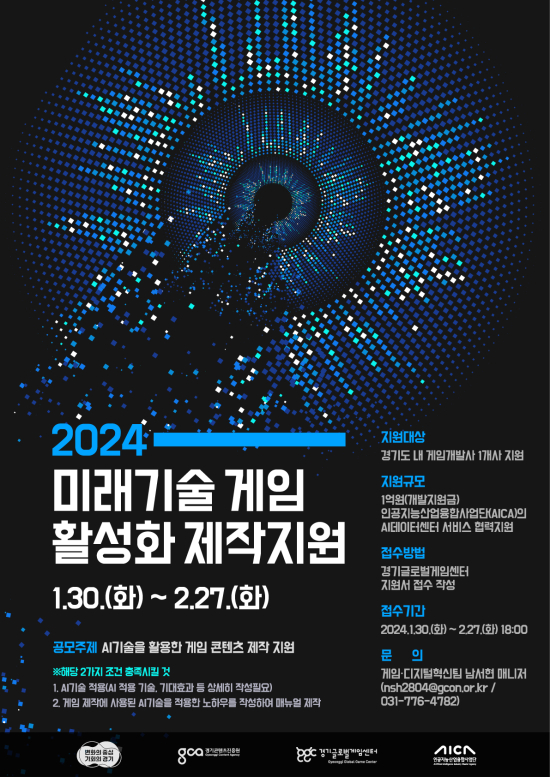 °æ±âÄÜÅÙÃ÷ÁøÈï¿øÀº AI¸¦ Ȱ¿ëÇØ °ÔÀÓ ÄÜÅÙÃ÷¸¦ Á¦ÀÛÇÏ´Â ¡®2024 ¹Ì·¡±â¼ú °ÔÀÓ È°¼ºÈ Á¦ÀÛÁö¿ø¡¯ »ç¾÷¿¡ Âü¿©ÇÒ °ÔÀÓ °³¹ß»ç¸¦ 2¿ù 27ÀϱîÁö ¸ðÁýÇÑ´Ù.