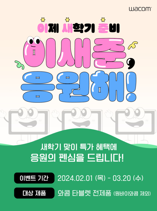 ¡®ÀÌ»õÁØ, ÀÀ¿øÇØ¡¯ ÇÁ·Î¸ð¼ÇÀº ÀÌÁ¦ »õÇб⸦ ÁغñÇϰųª »õÇØ °á½ÉÀ» ÇÏ¸ç ¿ÍÄÞ Å¸ºí·¿À» ±¸¸ÅÇÏ´Â °í°´À» ´ë»óÀ¸·Î ±ÝÀϺÎÅÍ ¿À´Â 3¿ù 20ÀÏ(¼ö)±îÁö ÁøÇàµÈ´Ù. ¿ÍÄÞ ¡ã½ÅƼũ ÇÁ·Î, ¡ã½ÅƼũ, ¡ãÀÎÆ©¾î½º ÇÁ·Î, ¡ã¿ÍÄÞ ¿ø µî ÁÖ¿ä Ÿºí·¿ ¸ðµ¨(¿ø¹ÙÀÌ¿ÍÄÞ Á¦¿Ü)À» ´ë»óÀ¸·Î ÇØ´ç Á¦Ç°À» ±¸¸ÅÇÏ´Â ¸ðµç °í°´¿¡°Ô ±¸¸Å ±âÁ¾°ú ȣȯµÇ´Â ±âº» Ææ½É 1ÆÑÀ» Ãß°¡ ÁõÁ¤ÇÑ´Ù. ¶ÇÇÑ Å¸ºí·¿ ±¸¸Å ½Ã ±¸¸Å ÆäÀÌÁö ¸®ºä °Ô½ÃÆÇ¿¡ 2024³â »õÇÐ±â ¹× »õÇØ °á½ÉÀ» ³²±â¸é ¿ÍÄÞ °ø½Ä ÀνºÅ¸±×·¥(@wacomkorea)¿¡¼ ¸ð¾Æº¸±â¸¦ ÅëÇØ ¸Þ½ÃÁö°¡ °øÀ¯µÉ ¿¹Á¤ÀÌ´Ù.