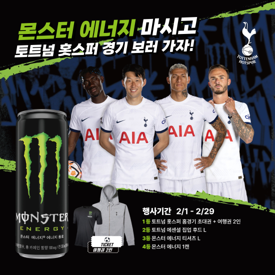 ¸ó½ºÅÍ ¿¡³ÊÁö(Monster Energy)°¡ 2¿ù 1ÀϺÎÅÍ 29ÀϱîÁö Àü±¹ 4°³ ÆíÀÇÁ¡ ºê·£µå ¸ÅÀå¿¡¼ ¸ó½ºÅÍ ¿¡³ÊÁö¸¦ ±¸¸ÅÇÏ´Â °í°´À» ´ë»óÀ¸·Î ¡®¸ó½ºÅÍ ¿¡³ÊÁö ¸¶½Ã°í Å䯮³Ñ Ȫ½ºÆÛ °æ±â º¸·¯ °¡ÀÚ!¡¯ ÇÁ·Î¸ð¼ÇÀ» ½Ç½ÃÇÑ´Ù.