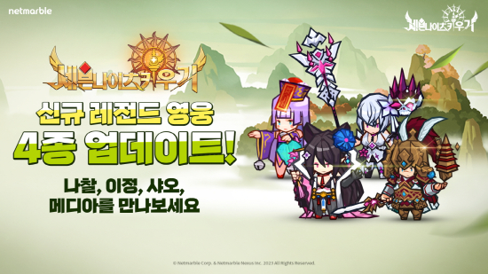 ³Ý¸¶ºíÀº <¼¼ºì³ªÀÌÃ÷ Ű¿ì±â>(°³¹ß»ç ³Ý¸¶ºí³Ø¼½º)¿¡ ½Å±Ô ·¹Àüµå ¿µ¿õ 4Á¾(³ªÂû, ÀÌÁ¤, »þ¿À, ¸Þµð¾Æ)À» Ãß°¡ÇÏ´Â µî ¾÷µ¥ÀÌÆ®¸¦ ÁøÇàÇß´Ù°í 8ÀÏ ¹àÇû´Ù.