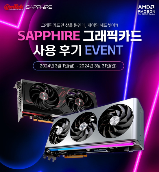 ÀÌ¿¥ÅؾÆÀÌ¿£¾¾´Â 3¿ù 1ÀϺÎÅÍ 3¿ù 31ÀÏ ¶Ç´Â ÇÑÁ¤¼ö·® ¼ÒÁø ½Ã±îÁö SAPPHIRE ¶óµ¥¿Â RX 7000 ½Ã¸®Áî ±×·¡ÇÈÄ«µå ¶Ç´Â ÀåÂø µÈ PC ±¸¸Å ÈÄ 5ºÐ ÄÆ Èıâ ÀÛ¼º ½Ã, COX SCARLET °¡»ó 7.1ä³Î RGB ³ëÀÌÁîĵ½½¸µ ¸¶ÀÌÅ© Áøµ¿ Ãʰ淮 °ÔÀÌ¹Ö Çìµå¼ÂÀ» ¼±Âø¼ø 100¸í¿¡°Ô ÁõÁ¤ÇÏ´Â ÇÁ·Î¸ð¼ÇÀ» ¿¬Àå ÁøÇàÇÑ´Ù ¹àÇû´Ù.