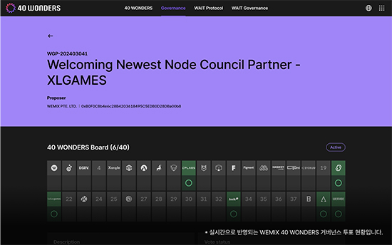 À§¹Í½º Àç´ÜÀÌ ¿¢½º¿¤°ÔÀÓÁ À§¹Í½º3.0(WEMIX3.0) ¸ÞÀγÝÀÇ ³ëµå Ä«¿î½½ ÆÄÆ®³Ê(Node Council Partner)ÀÎ ¡¯40 ¿ø´õ½º(40 WONDERS)¡¯·Î ¿µÀÔÇϱâ À§ÇÑ °Å¹ö³Í½º ÅõÇ¥¸¦ ½ÃÀÛÇß´Ù.