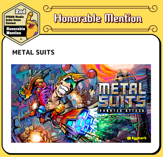 ¿¡±×Ÿ¸£Æ®´Â Àڻ簡 °³¹ß ÁßÀÎ PC/ÄÜ¼Ö 2D Ⱦ½ºÅ©·Ñ °ÔÀÓ ¡®¸ÞÅ»½´Ã÷(METAL SUITS)¡¯°¡ ¹Ý´ÙÀ̳²ÄÚ ±×·ìÀÌ ÁÖ°üÇÏ°í ¼öÆÛ¼¿ÀÌ ÈÄ¿øÇÏ´Â ¡°GYAAR Studio Àεð °ÔÀÓ ÄÜÅ×½ºÆ®¡±¿¡¼ ¾Æ³Ê·¯ºí ¸à¼Ç(Honorable Mention)»óÀ» ¼ö»óÇß´Ù°í 5ÀÏ ¹àÇû´Ù.