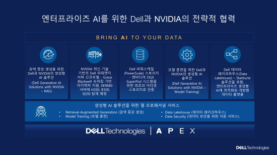 µ¨ Å×Å©³î·ÎÁö½º(Dell Technologies)°¡ ¿£ºñµð¾Æ(NVIDIA)¿Í ¿£ÅÍÇÁ¶óÀÌÁî AI Àû¿ë È®»êÀ» À§ÇØ Àü·«Àû Çù·ÂÀ» °ÈÇÑ´Ù. ½Å±Ô ¼Ö·ç¼ÇÀÎ ¡®µ¨ AI ÆÑÅ丮 À§µå ¿£ºñµð¾Æ(Dell AI Factory with NVIDIA)¡¯¸¦ ºñ·ÔÇØ ¡®µ¨ »ý¼ºÇü AI ¼Ö·ç¼Ç(Dell Generative AI Solutions)¡¯ Æ÷Æ®Æú¸®¿À¸¦ È®´ëÇϰí, ±â¾÷°ú ±â°üµéÀÌ ÀÚü º¸À¯ÇÑ µ¥ÀÌÅÍ¿Í AI Åø, ±×¸®°í ¿ÂÇÁ·¹¹Ì½º ÀÎÇÁ¶ó¸¦ º¸´Ù ¾ÈÀüÇÏ°í ºü¸£°Ô ÅëÇÕÇÏ¿© »ý¼ºÇü AI ÅõÀÚ È¿°ú¸¦ ±Ø´ëÈÇϵµ·Ï µ½´Â °ÍÀ» °ñÀÚ·Î ÇÑ´Ù.