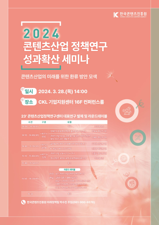 ¹®ÈüÀ°°ü±¤ºÎ¿Í Çѱ¹ÄÜÅÙÃ÷ÁøÈï¿ø(ÀÌÇÏ ÄÜÁø¿ø)Àº ÄÜÅÙÃ÷»ê¾÷ Á¤Ã¥¿¬±¸ ¼º°úÈ®»ê ¼¼¹Ì³ª <ÄÜÅÙÃ÷»ê¾÷ÀÇ ¹Ì·¡¸¦ À§ÇÑ È¯·ù ¹æ¾È ¸ð»ö>À» 3¿ù 28ÀÏ(¸ñ) ¼¿ï ±¤È¹® CKL ±â¾÷Áö¿ø¼¾ÅÍ¿¡¼ °³ÃÖÇß´Ù.