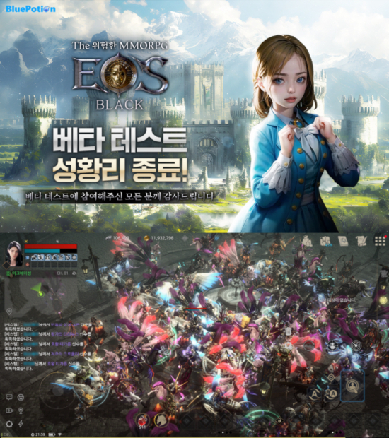 ºí·çÆ÷¼Ç°ÔÀÓÁî´Â Àڻ翡¼ Á÷Á¢ °³¹ßÇÏ°í ¿Ã »ó¹Ý±â ¼ºñ½º ¿¹Á¤ÀÎ ¸ð¹ÙÀÏ MMORPG <¿¡¿À½º ºí·¢>ÀÇ º£Å¸ Å×½ºÆ®°¡ ¼ºÈ²¸®¿¡ Á¾·áµÆ´Ù°í 8ÀÏ ¹àÇû´Ù.