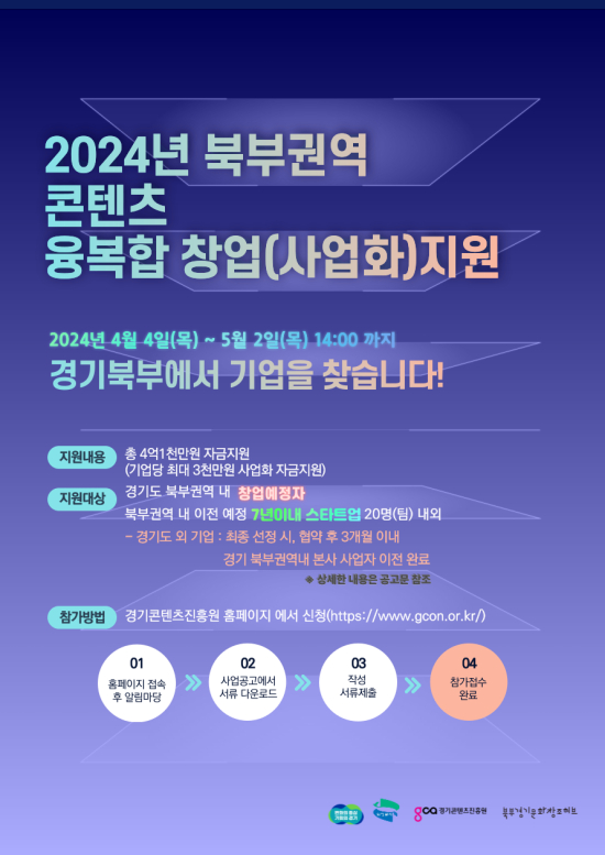 °æ±âµµ¿Í ÀÇÁ¤ºÎ½Ã°¡ ¼³¸³ÇÏ°í °æ±âÄÜÅÙÃ÷ÁøÈï¿ø(ÀÌÇÏ °æÄÜÁø)ÀÌ ¿î¿µÇÏ´Â ºÏºÎ °æ±â¹®ÈâÁ¶Çãºê¿¡¼ ¡®2024³â ºÏºÎ±Ç¿ª ÄÜÅÙÃ÷ À¶º¹ÇÕ Ã¢¾÷Áö¿ø¡¯ »ç¾÷¿¡ Âü°¡ÇÒ ÄÜÅÙÃ÷ ±â¾÷ 20°³ »ç¸¦ 5¿ù 2ÀϱîÁö ¸ðÁýÇÑ´Ù.
