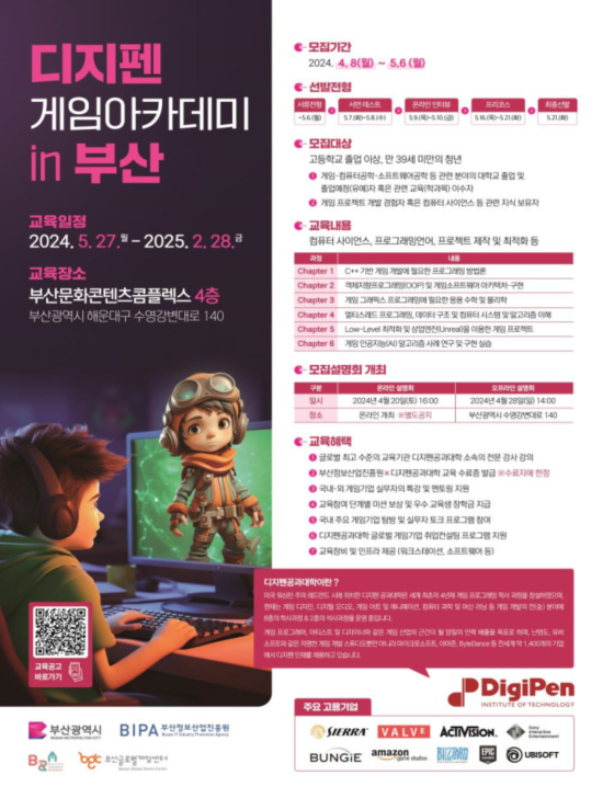 ºÎ»êÁ¤º¸»ê¾÷ÁøÈï¿ø°ú µðÁöÆæ °ø°ú´ëÇÐÀº ºÎ»ê±¤¿ª½Ã¿Í µðÁöÆæ°ø°ú´ëÇÐÀÌ Ã¼°áÇÑ <±Û·Î¹ú °ÔÀÓ ÀÎÀç ¾ç¼º°ú °ÔÀÓ»ê¾÷ â¾÷»ýŰè Á¶¼º> ¾÷¹«Çù¾àÀ» ¹ÙÅÁÀ¸·Î Àü¹® °ÔÀÓ°³¹ßÀÚ ¾ç¼ºÀ» À§ÇÑ ±³À°°úÁ¤ ¡¸µðÁöÆæ °ÔÀÓ¾ÆÄ«µ¥¹Ì in ºÎ»ê¡¹°³¼³Çϰí, ±³À°»ýÀ» ¸ðÁýÇÑ´Ù°í ¹àÇû´Ù. ¡¸µðÁöÆæ °ÔÀÓ¾ÆÄ«µ¥¹Ì in ºÎ»ê¡¹Àº ¼¼°èÀûÀÎ °ÔÀÓ Àü¹® ±³À°±â°üÀÎ µðÁöÆæ °ø°ú´ëÇÐÀÇ ±³À° ½Ã½ºÅÛ°ú °»çÁøÀ» µµÀÔÇÑ ±³À° °úÁ¤À¸·Î, ÄÄÇ»ÅÍ »çÀ̾𽺠¹× °´Ã¼ÁöÇâ¾ð¾î(C++)¸¦ ±â¹ÝÀ¸·Î °ÔÀÓ¿£Áø ¾ð¸®¾ó(Unreal) ÇÁ·ÎÁ§Æ® Á¦ÀÛ ½Ç½À µîÀÇ Ä¿¸®Å§·³À¸·Î ¿î¿µµÈ´Ù. ƯÈ÷, ±Û·Î¹ú °ÔÀÓ °³¹ßÀÚÀÇ Æ¯°°ú ÇÁ·ÎÁ§Æ® ¸àÅ丵, Ãë¾÷ ÄÁ¼³ÆÃ, °ÔÀÓ±â¾÷ ޹æ ÇÁ·Î±×·¥, ¿ì¼ö ±³À°»ý ÀåÇÐÁ¦µµ µî ´Ù¾çÇÑ ÇýÅõµ ÇÔ²² Á¦°øµÉ ¿¹Á¤ÀÌ´Ù.
