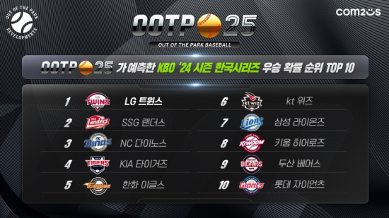 ÄÄÅõ½º´Â ÀÚȸ»ç ¡®¾Æ¿ô ¿Àºê ´õ ÆÄÅ© µðº§·Ó¸ÕÃ÷(Out of the Park Developments)¡¯ÀÇ MLB, KBO °ø½Ä ¶óÀ̼±½º ¾ß±¸ °ÔÀÓ ¡®¾Æ¿ô ¿Àºê ´õ ÆÄÅ© º£À̽ºº¼ 25(ÀÌÇÏ OOTP 25)¡¯°¡ ÁøÇàÇÑ 2024 ¾ß±¸ ¸®±× ½Ã¹Ä·¹ÀÌ¼Ç °á°ú¸¦ °ø°³Çß´Ù.