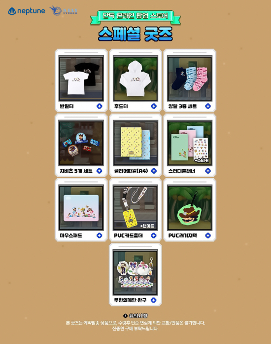 À̹ø¿¡ Ãâ½ÃÇÑ ¹«ÇÑÀǰè´Ü ±ÂÁî´Â Àαâ ij¸¯ÅÍÀÎ ¡ã¡®ºñÁö´Ï½º ¸Ç¡¯ ¡ã¡®º¸¾È°ü¡¯ ¡ã¡®Ä¡¾î¸®´õ¡¯ µîÀ» ºñ·ÔÇØ Æê°ú °ÔÀÓ ¼Ó ¼ÒÀ縦 µµÆ® ±×·¡ÇÈ ÇüÅ·ΠÁ¦Ç°¿¡ ´ã¾Æ³½ °Ô Ư¡ÀÌ´Ù. Ƽ¼ÅÃ÷, Èĵ导, ¾ç¸» µî ÀÇ·ùºÎÅÍ Å¬¸®¾îÆÄÀÏ, ½ºÅ͵ðÇ÷¡³Ê, ¸¶¿ì½ºÆÐµå, ÁöºñÃ÷, Ä«µåȦ´õ, ·¯±âÁöÅà µî ¹®±¸¡¤¿Ï±¸¡¤¾×¼¼¼¸®·ù±îÁö ÃÑ 10Á¾ÀÇ ´Ù¾çÇÑ »óǰÀ¸·Î ±¸¼ºµÆ´Ù.
