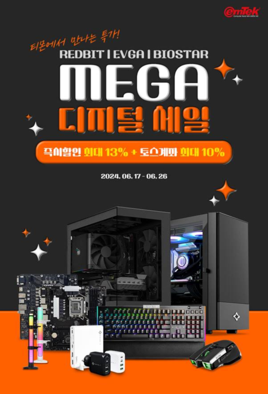 À̹ø Ƽ¸ó 6¿ù ¸Þ°¡µðÁöÅÐ ¼¼ÀÏ¿¡¼´Â ·¹µåºøPC »Ó¸¸ ¾Æ´Ï¶ó BIOSTAR ¸ÞÀκ¸µå, EVGA ±â°è½Ä °ÔÀÌ¹Ö Å°º¸µå¿Í ¸¶¿ì½º, ·¹µåºø °í¼Ó PDÃæÀü±â¿Í ±×·¡ÇÈÄ«µå ÁöÁö´ë µî ´Ù¾çÇÑ »óǰµéÀ» ¸¸³ªº¼ ¼ö ÀÖ´Ù.