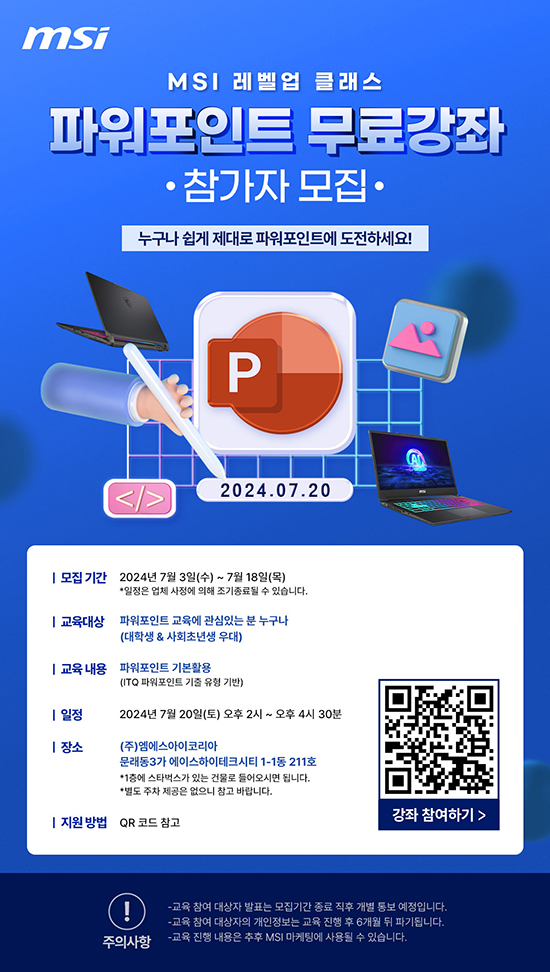 ¿¥¿¡½º¾ÆÀÌÄÚ¸®¾Æ´Â ¿À´Â 7¿ù 20ÀÏ(Åä)¿¡ 'MSI ·¹º§¾÷ Ŭ·¡½º' ÆÄ¿öÆ÷ÀÎÆ® ¹«·á°Á¸¦ °³ÃÖÇÏ¿© Âü°¡ÀÚ¸¦ ¸ðÁýÇÑ´Ù°í ¹àÇû´Ù.