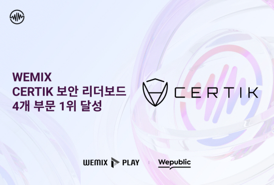 À§¹Í½º(WEMIX)°¡ ¼Æ½(CertiK) º¸¾È ¸®´õº¸µå(Leaderboard) Áß 4°³ ºÎ¹®¿¡¼ 1À§¸¦ Â÷ÁöÇß´Ù. 1À§¿¡ ¿À¸¥ ºÐ¾ß´Â °ÔÀ̹Ö(Gaming), °ÔÀÓÆÄÀÌ(GameFi), Ç÷¹ÀÌ-Åõ-¾ð(Play-to-Earn), À¥3(Web3) µîÀÌ´Ù.