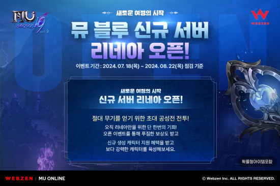 À¥Á¨ÀÌ PC MMORPG ¡®¹Â ¿Â¶óÀΡ¯ÀÇ ¹Â ºí·ç¿¡¼ ½Å±Ô ¼¹ö ¡®¸®³×¾Æ¡¯¸¦ ¿ÀÇÂÇÑ´Ù.