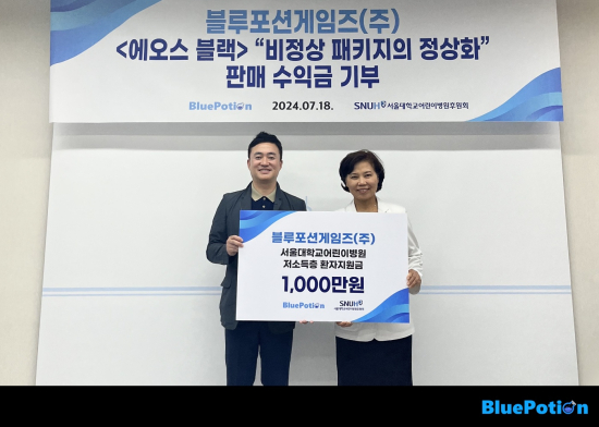 ºí·çÆ÷¼Ç°ÔÀÓÁî´Â ÀÚ»çÀÇ ÃֽЏð¹ÙÀÏ MMORPG <¿¡¿À½º ºí·¢>ÀÌ ¼¿ï´ëÇб³ ¾î¸°À̺´¿ø¿¡ 1õ¸¸ ¿ø ±âºÎ±ÝÀ» Àü´ÞÇß´Ù°í 18ÀÏ ¹àÇû´Ù.