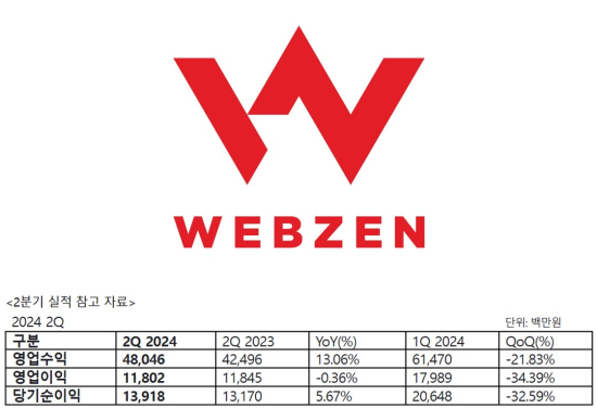 [À¥Á¨] 2024³â 2ºÐ±â ¿µ¾÷¼öÀÍ 480¾ï ¿ø, ¿µ¾÷ÀÌÀÍ 118¾ï ¿ø ±â·Ï |