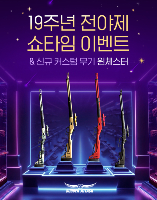 ¸ÕÀú, 20ÀϱîÁö °ÔÀÓ Á¢¼Ó ½Ã ¸ÅÀÏ Á¤ÇØÁø ½Ã°£¸¶´Ù ¡®¼îŸÀÓ À̺¥Æ® ÄÁÅ×À̳ʡ¯, ¡®µ¹°Ý ±â°£¿¬Àå ¿µ±¸Á¦¡¯, ¡®¿µ±¸Á¦ ¹ÐºÀ¡¯, ¡®µµ¾È_[C]À©Ã¼½ºÅÍ¡¯ µîÀ» ÇÏ·ç ÃÖ´ë 7ȸ±îÁö ¼±¹°ÇÏ´Â ¡®19ÁÖ³â Àü¾ßÁ¦ ¼îŸÀÓ À̺¥Æ®¡¯¸¦ ÁøÇàÇÑ´Ù. À̺¥Æ®¿¡¼ ÁÖ¾îÁö´Â ¡®¼îŸÀÓ À̺¥Æ® ÄÁÅ×À̳ʡ¯¿Í ¡®¼îŸÀÓ À̺¥Æ® Űīµå¡¯ µ¿½Ã »ç¿ë ½Ã ¡®SG-12(I) Cool ¿µ±¸Á¦¡¯, ¡®D.Eagle(S) Ç¥¹ü ¿µ±¸Á¦¡¯ µîÀÇ ¹«±â ¾ÆÀÌÅÛ°ú ¡®¼îÄÝ¶óÆ¼¿¡ B ¼¼Æ® ¿µ±¸Á¦ µîÀÇ Ä³¸¯ÅÍ ¼¼Æ®¸¦ Ãß°¡·Î Á¦°øÇÑ´Ù.
