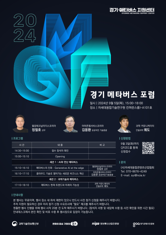 °æ±âÄÜÅÙÃ÷ÁøÈï¿ø(ÀÌÇÏ °æÄÜÁø)¿¡¼ ¿î¿µÇÏ´Â °æ±â ¸ÞŸ¹ö½º Áö¿ø¼¾ÅÍ´Â ¡®2024³â °æ±â ¸ÞŸ¹ö½º Æ÷·³¡¯À» ¼ö¿ø½Ã Â÷¼¼´ëÀ¶ÇÕ±â¼ú¿¬±¸¿ø ÄÁÆÛ·±½º·ë¿¡¼ 9¿ù 5ÀÏ 15½Ã¿¡ °³ÃÖÇÑ´Ù°í ¹àÇû´Ù.