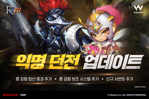 À¥Á¨(´ëÇ¥ ±èÅ¿µ, http://company.webzen.com)ÀÌ ¸ð¹ÙÀÏMMORPG ¡®R2M¡¯¿¡¼ ½Å±Ô ´øÀüÀ» Æ÷ÇÔÇÑ ÄÜÅÙÃ÷ ¾÷µ¥ÀÌÆ®¸¦ ½Ç½ÃÇÑ´Ù.