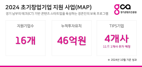 °æ±âÄÜÅÙÃ÷ÁøÈï¿ø(ÀÌÇÏ °æÄÜÁø)Àº °æ±âµµ ³²ºÎ ±Ç¿ªÀ» Áß½ÉÀ¸·Î Ȱµ¿ÇÏ´Â ICT(Á¤º¸Åë½Å±â¼ú) ±â¹Ý ÄÜÅÙÃ÷ ±â¾÷ÀÇ Ã¢¾÷°ú ¼ºÀåÀ» Áö¿øÇÏ´Â ¡®Ãʱââ¾÷±â¾÷ Áö¿ø »ç¾÷(MAP, Micro Accelerating Program)¡¯À» ÅëÇØ 46¾ï ¿ø ±Ô¸ðÀÇ ÅõÀÚÀ¯Ä¡ ¼º°ú¸¦ °Åµ×´Ù°í 21ÀÏ ¹àÇû´Ù.