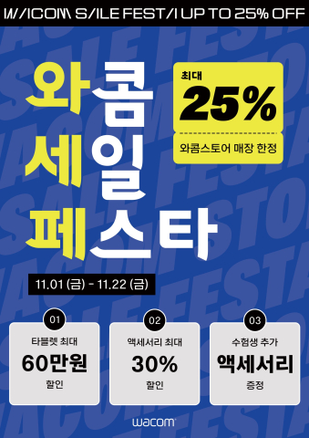 ¿ÍÄÞ(Wacom)ÀÇ Çѱ¹¹ýÀÎ ¿ÍÄÞÄÚ¸®¾Æ(´ëÇ¥ ±èÁÖÇü, www.wacom.com)°¡ ±ÝÀϺÎÅÍ ¿À´Â 22ÀÏ(±Ý)±îÁö Àü±¹ ¿ÍÄÞ½ºÅä¾î ¿ÀÇÁ¶óÀÎ ¸ÅÀå¿¡¼ ¿ÍÄÞ Å¸ºí·¿ Àü Á¦Ç° ¹× ¾×¼¼¼¸® ±¸¸Å ÇÒÀÎ ÇýÅÃÀ» Á¦°øÇÏ´Â ¡®¿ÍÄÞ ¼¼ÀÏ Æä½ºÅ¸¡¯¸¦ ÁøÇàÇÑ´Ù.