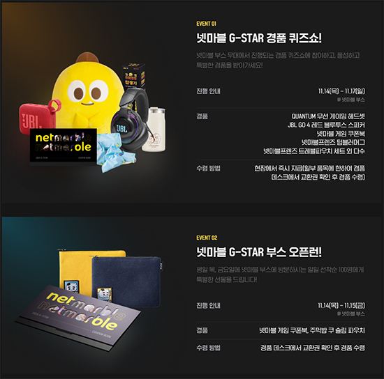 À̹ۿ¡ ³Ý¸¶ºí Àü½Ã°ü¿¡¼´Â °ÔÀÓ °ü·Ã °æÇ° ÄûÁî¼î¿Í ÀÏÀÏ ¼±Âø¼ø 100¸í¿¡°Ô ¼±¹°À» Á¦°øÇÏ´Â ºÎ½º ¿ÀÇ·±ÀÌ ¿¹Á¤µÅ ÀÖ´Ù. ¡®¿ÕÁÂÀÇ °ÔÀÓ: Å·½º·Îµå¡¯¿Í ¡®¸ó±æ:STAR DIVE¡¯´Â ½Ã¿¬ ÈÄ »óǰ Á¦°ø, ¡®¼¼ºì³ªÀÌÃ÷ ¸®¹ö½º¡¯´Â ÆÒ ÀÎÁõ ÈÄ Å°¸µ Áö±Þ, ¡®Å· ¿Àºê ÆÄÀÌÅÍ AFK¡¯´Â °¡¿Ü¹ÙÀ§º¸¡¤ÄûÁî, ¡®³ª È¥ÀÚ¸¸ ·¹º§¾÷:¾î¶óÀÌÁ´Â ÇöÀå ÀÀ¿ø¿Õ µî À̺¥Æ®·Î °ü¶÷°´À» ¸Â´Â´Ù.