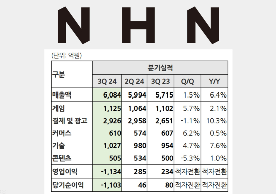 ¿£¿¡ÀÌÄ¡¿£(ÀÌÇÏ NHN)ÀÌ 2024³â 3ºÐ±â °æ¿µ½ÇÀûÀ» 12ÀÏ ¹ßÇ¥Çß´Ù.